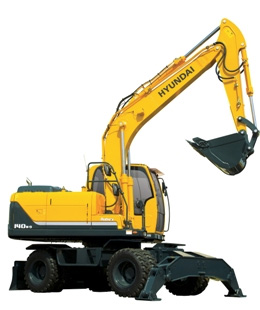 Аренда экскаватора колесного с ковшом, гидромолотом.